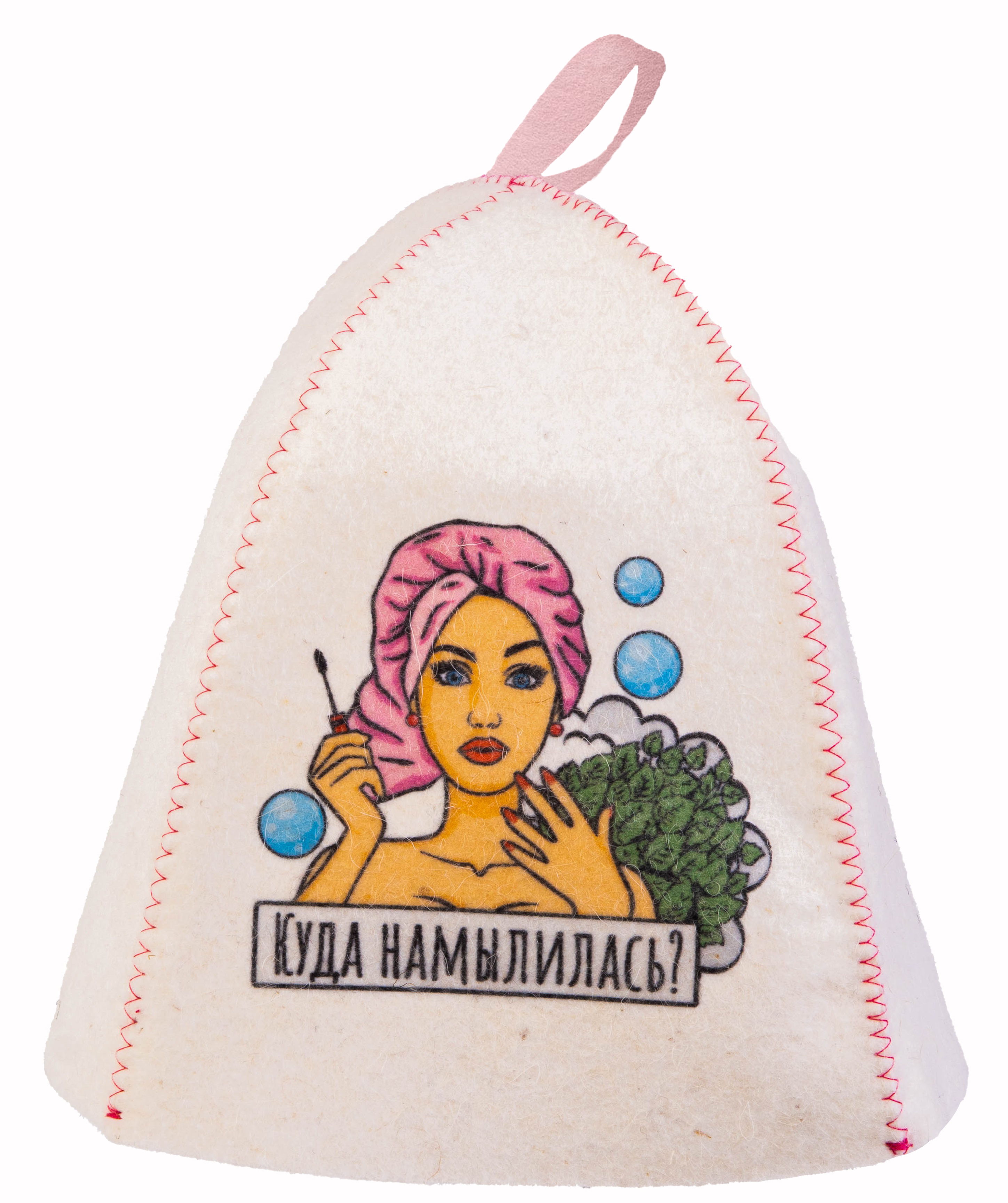 Шапка банная с принтом "БАНЯ.Матрёшка баблгам", войлок белый