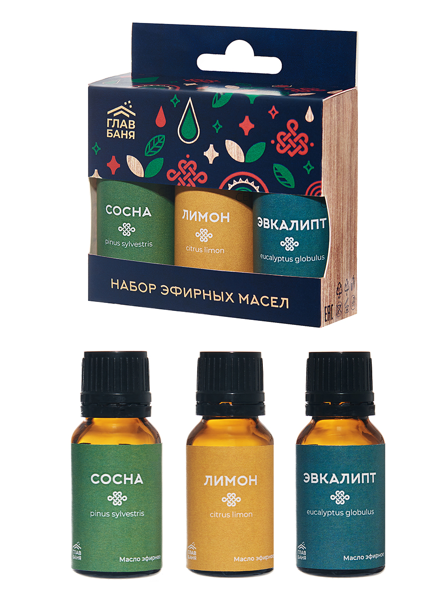 Набор масел эфирных "Главбаня"(лимон, можжевельник, мята, сосна),4х15мл